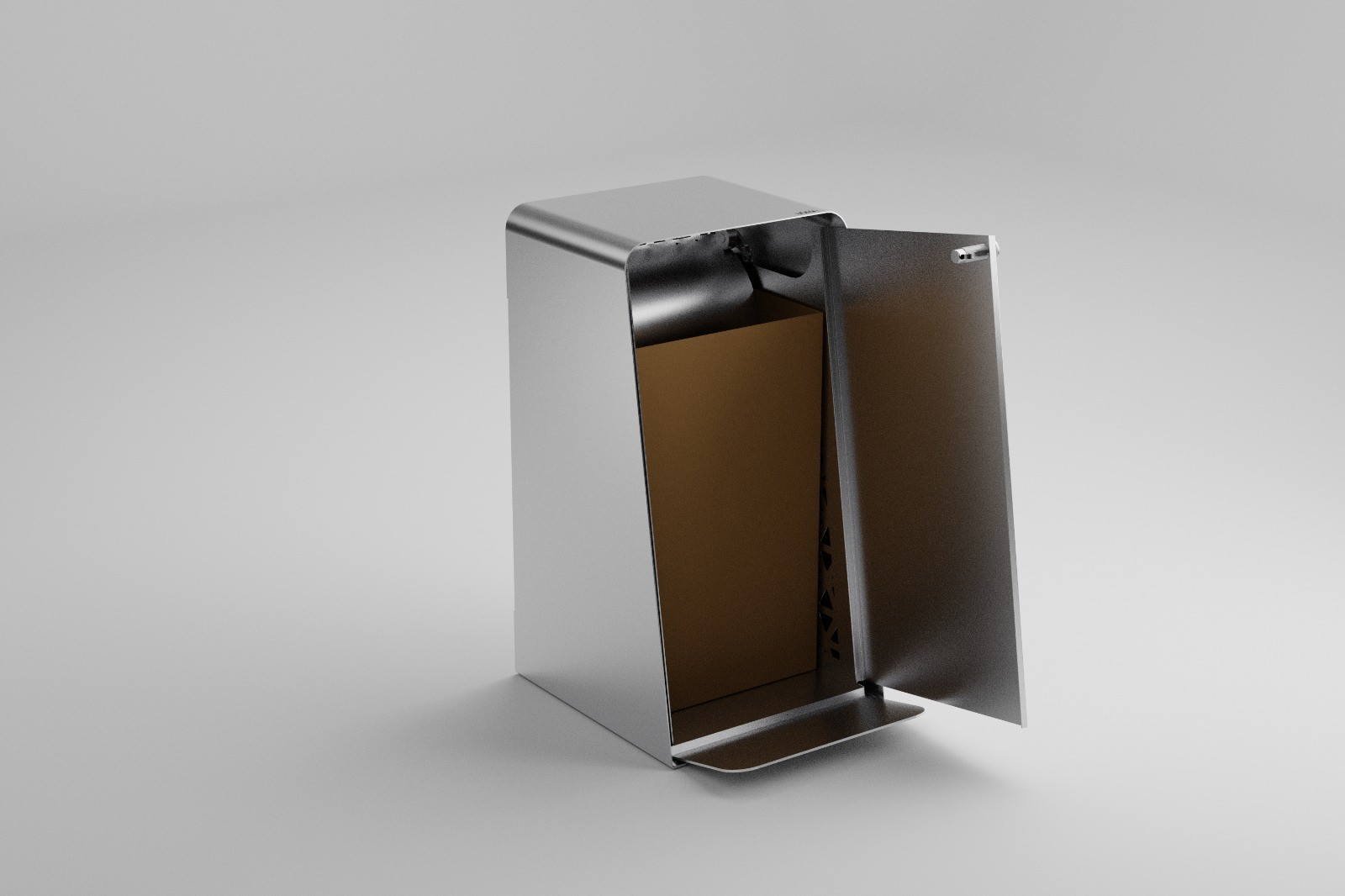 When opened, you’ll see the cardboard container inside. By using cardboard instead of plastic bags, the bin reduces plastic waste and allows for easier recycling, contributing to a more sustainable waste cycle. Thanks to the compression, containers also need to be replaced less frequently, reducing material use and servicing.
